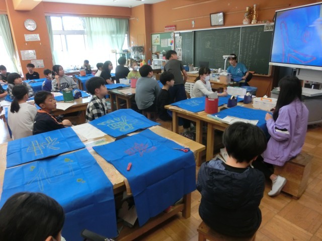 図工でも運動会に向けた準備として半被の作成に取り組んでいました。