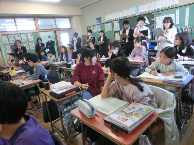 5年2組の教室には多くの先生方があつまり、授業の様子を見守りました。
