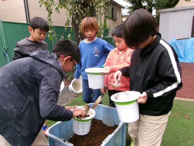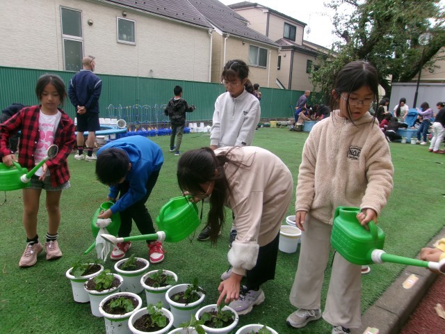 学童擁護の方が種から大切に育ててくれたさくら草の苗を植えました。