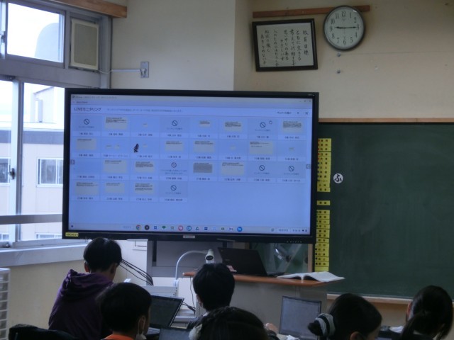これまでは発表した子どもの意見だけとか交流した近くの友達だけの考えしか共有できないことが多かったのですが、自分の席にいながらクラス全員の考えを共有することができます。
