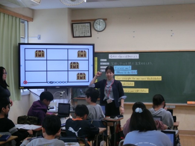今日は、その表現を活用して宝箱の場所を訪ねたり、探したりするゲーム性を取り入れる工夫をしていました。