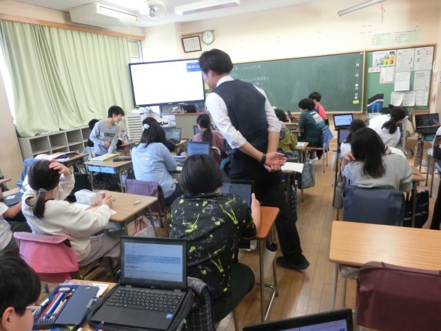 教室内では、牧野先生がとにかく教室中をウロウロ。子どもたちの取組の状況を見ながら、支援に徹していました。