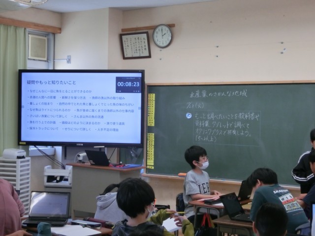 3組と同じく水産業でもっと調べたいことをまとめる学習でした。