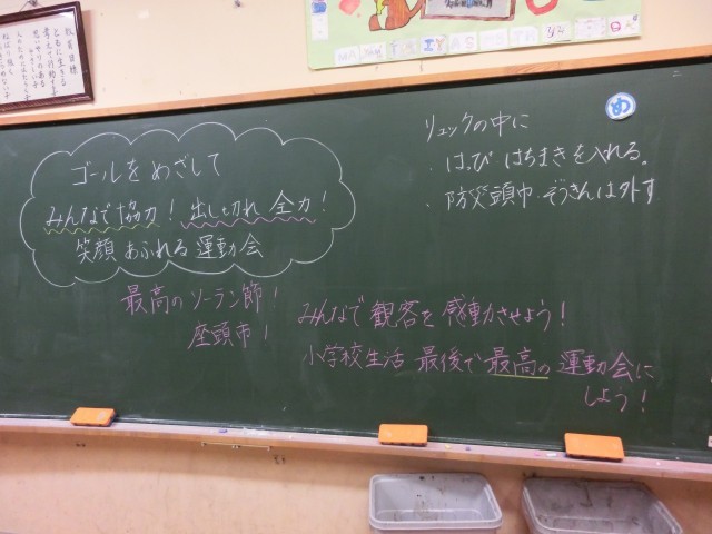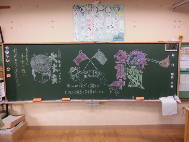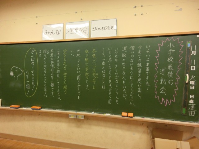 小学校生活最後の運動会をむかえた朝の各教室は、担任からの熱く温かなメッセージが書かれていました。
