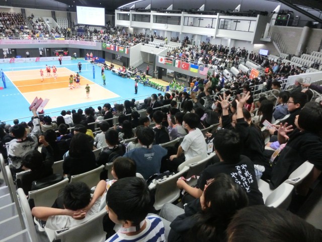 女子のブラジル対カナダ、男子のブラジル対トルコの試合を観戦しましたが、男子の試合はサーブやスパイク・ブロックもとても迫力があり、子どもたちからも驚きの歓声が上がっていました。
