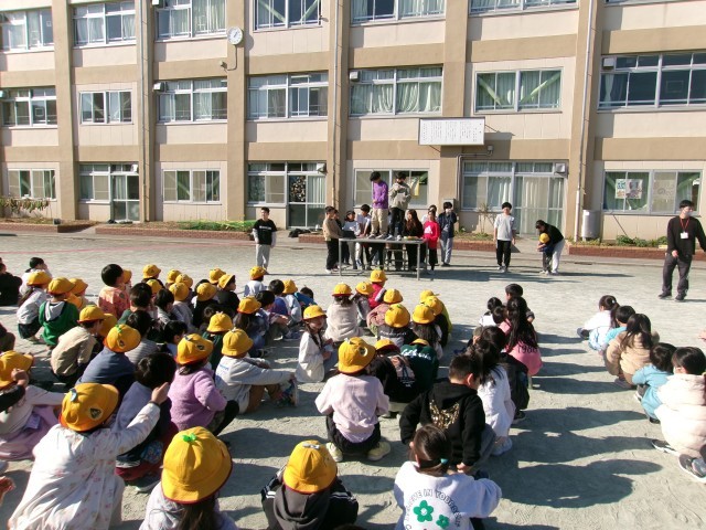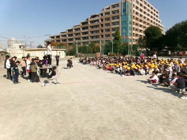 昼休みの時間に集会委員による児童集会を行いました。体育館での児童集会が多かったのですが、今回は校庭でした。内容は全校児童での○×クイズです。音声が聞こえにくくなってしまい途中で中断もありましたが、集会委員のみんなが全校児童に声をかけながら会を進めてくれました。
