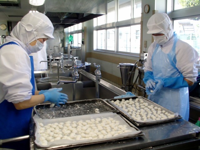今日は調理室皆でお団子を丸めて白玉汁を作りました。