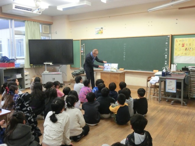 地域の読み聞かせボランティアの方に来ていただいてるクラスもあれば、5年2組と3組では、担任の先生が入れ替わって読み聞かせをしていました。