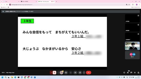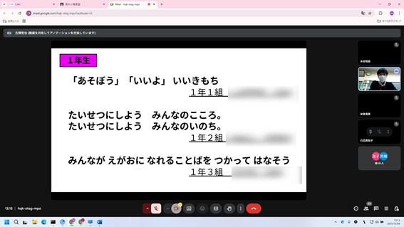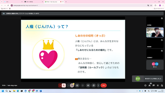 人権週間にともない、本日の昼はオンラインで人権集会を行いました。