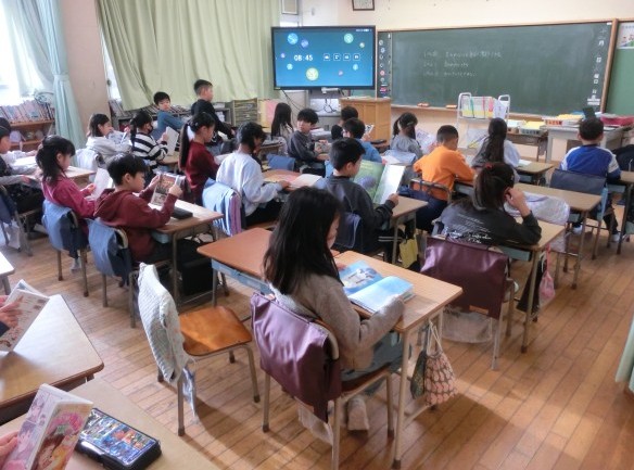 今朝は、安全指導日でしたが、2年1組の様子を見に行くと8:30のチャイム前にほとんどの子どもたちが座って本を読み始めていました。