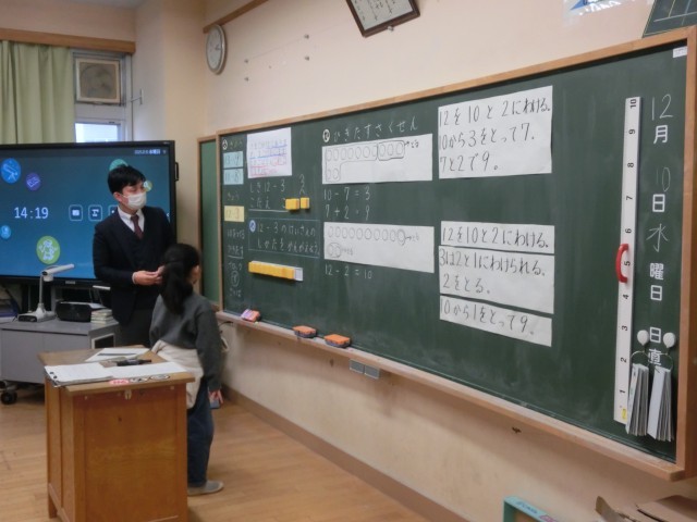 多くの先生方に囲まれながら「12-3」の引き算について考えました。