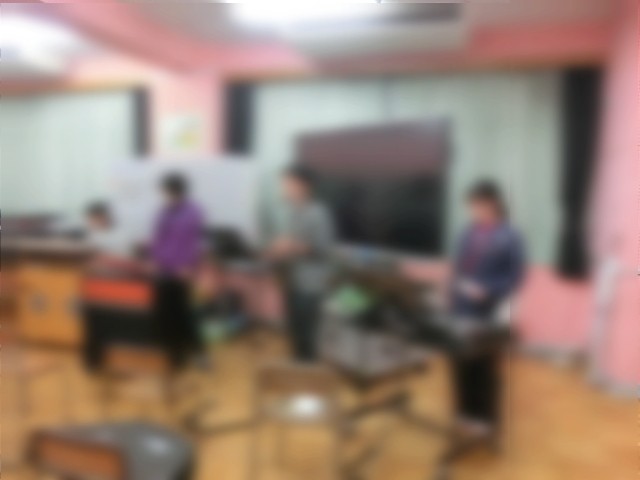 職員室から音楽室に移動して打ち合わせや何かの準備をしている先生たちがいました。