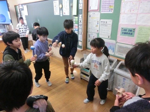 けん玉週間3日目は6年生の教室を中心に見て回っていました。