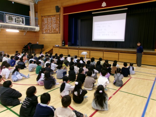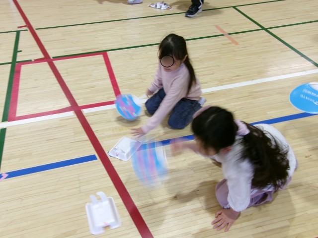 学年集会では、3学期の目標を確認し、「みんなで頑張ろう!」と心を一つにしました。その後は、図工の時間に作った手作りおもちゃで遊びました。自分が作ったおもちゃをお友達に紹介したり、一緒に遊んだりと、体育館いっぱいに笑顔が広がりました。