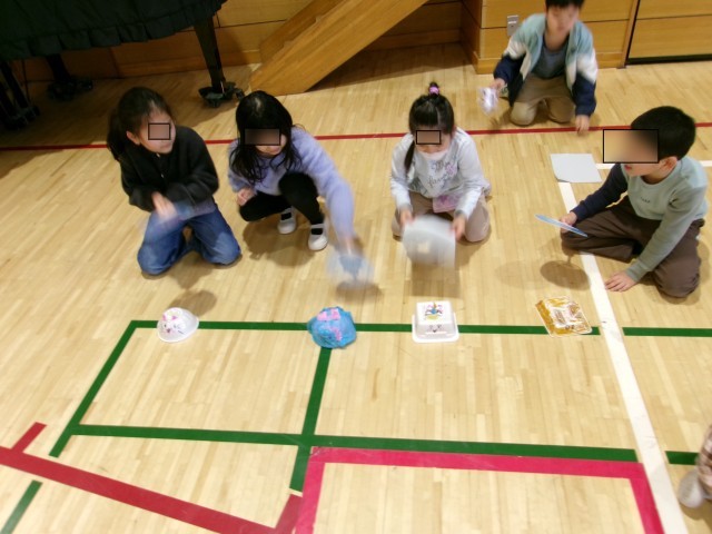 本日、学年みんなで「学年集会」と「図工のおもちゃ遊び」を行いました。
