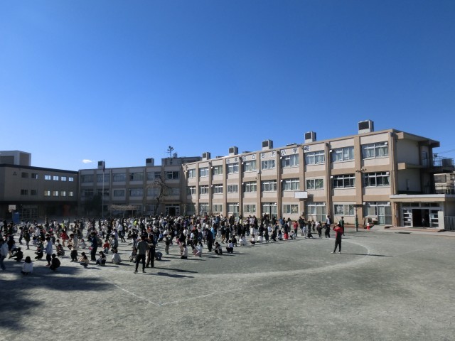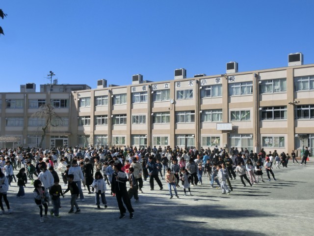 今日の昼は、明日の土曜授業で披露するけん玉ダンスの最後の練習でした。