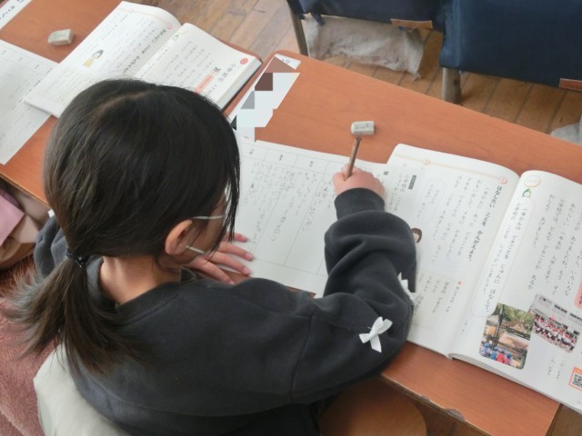 1年生が小学校生活を紹介する文章を作るために、1年間の思い出を振り返っていました。