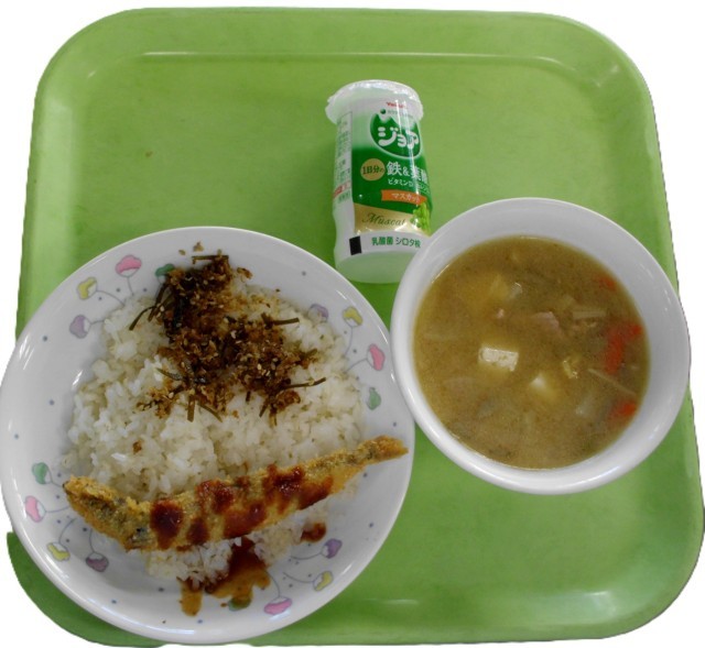 今日はふりかけごはんとシシャモフライです。