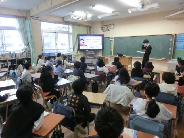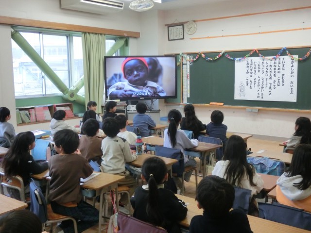 ユニセフ募金をするにあたり、今朝は代表委員の児童が作成した動画などでユニセフの活動について学びました。
