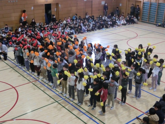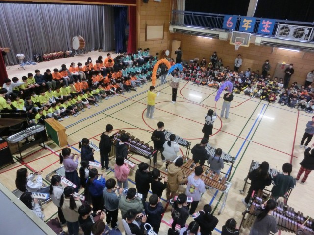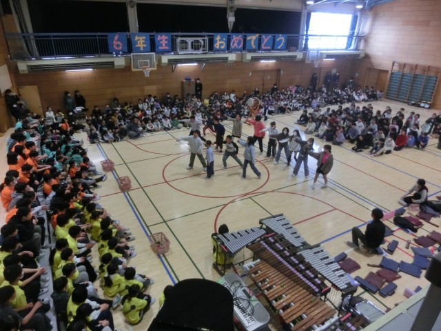 代表委員会児童が司会進行を務めて、1~5年生がそれぞれ学年ごとに思い出を振り返りながら出し物で感謝の気持ちを伝えました。