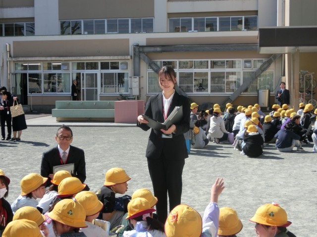 元気いっぱいな子どもたち一人一人を新年度新学級の担任として丁寧に呼名して確認する先生たち。