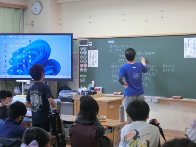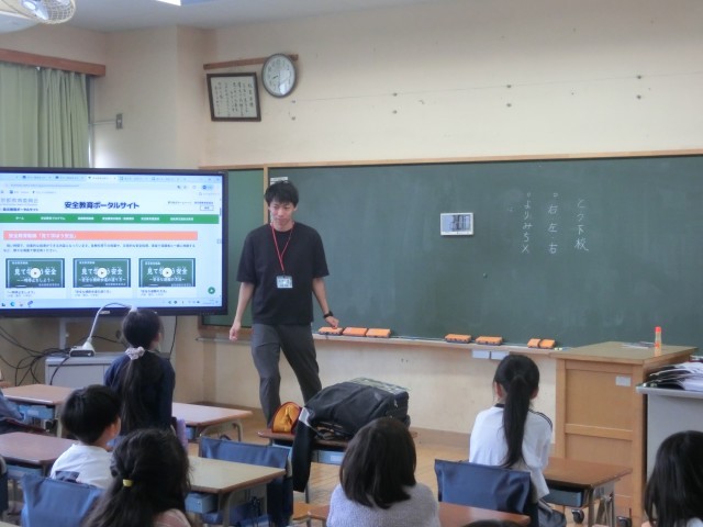 登下校に潜む危険などを想起させ、子どもたちからも気を付けることなどを拾いながら、安全に過ごすために必要なことを確認していました。