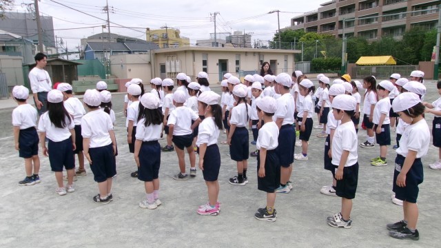 今日は、1年生にとってはじめての校庭での体育でした。昨日、体育館で練習した「ならびっこ」を思い出しながら、校庭でも上手に整列できた立派な1年生でした!「休め」や「気をつけ」などを教わると、すぐに上手にできる様子も見られました!!1年生全員でやったおにごっこも元気いっぱい走っていました!これから気温も高くなることが予想されます。水分をしっかりとる習慣が付けられるように声かけをしながら、暑さに負けない体づくりも少しずつしていけたらと思っています。