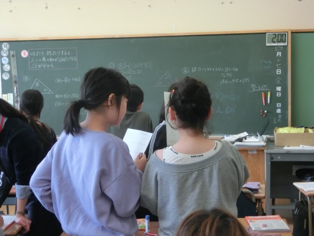 今日は、三角形の角の和について学習していました。