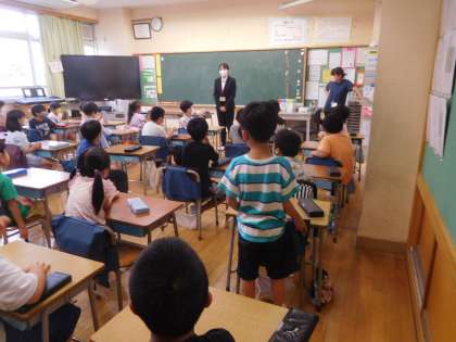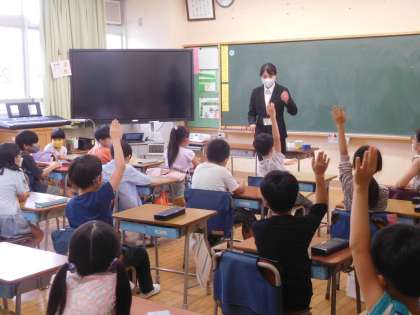 教育実習が今日から始まりました。2年3組で勉強しますが、その他の学級でも授業を見たり、子供たちとかかわったりしながら学んでいきます。写真は、自己紹介の後に、子供たち方の質問を受けているところです。