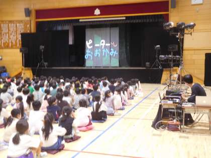 東京都の「子供を笑顔にするプロジェクト」で、「人形劇団プーク」をお招きし、「ピーターとおおかみ」を1・2年生が鑑賞しました。子供たちは大喜びで、食い入るように人形劇を楽しみました。劇団プークの皆様、笑顔をありがとうございました。