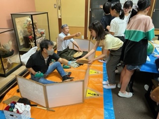 食事の後に入浴し、その後、ふくべ細工を作りました。各部屋で1日の振り返りをした後に、班長会議で今日の反省と明日のめあてを決めました。