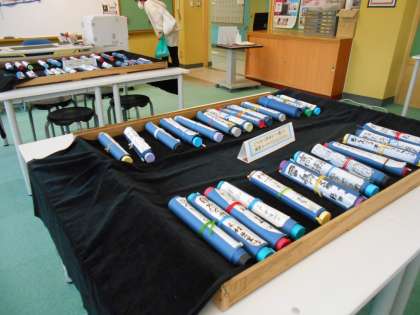 線、ぽたぽたの滴、しぶき、かすれ・・・いい味が出た作品を巻物にして、題名の紙を貼ってあります。