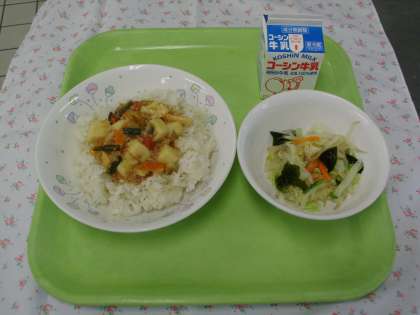 西湖豆腐は学校給食以外ではなかなか見かけないメニューですが、トマトを使った辛くない麻婆豆腐のような料理です。