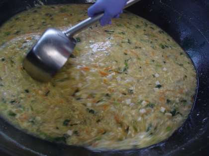 少し硬めに炊いたご飯と具を合わせ、味を調えて完成です。