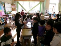 4色の三角形の色板を使っていろいろな形を作る学習でした。