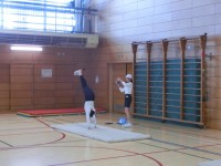 5年生 マット運動 体育館体育のマット運動でタブレットPCを活用して取り組んでい...
