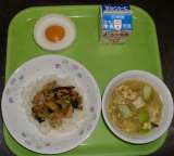 献立 ルーローハン ビーフンスープ おかしな目玉焼き 本日の初登場メニ...