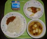 献立 ごはん ザンギ コーンと青菜の炒め物 石狩汁 今日は北海道メニ...