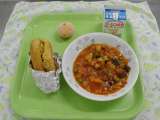牛乳 ホットチリドッグ キャベツとじゃが芋のスープ煮 フルーツヨーグルトかけ ...