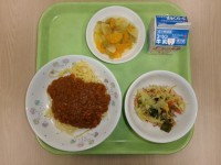 本日の献立~保健給食委員のコラボメニュー④~  ・牛乳  ・スパゲッティミートソ...