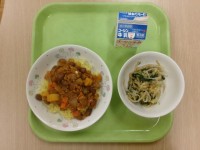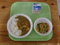 本日の献立  ・牛乳  ・米粉カレー  ・海藻サラダ