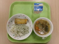 本日の献立~あまつっこ給食~  ・牛乳  ・かおりごはん  ・ひじきの春巻き(あ...