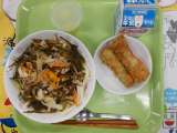 <献立> 牛乳 ごはん ニギスのカレー揚げ ウーフの五目きんぴら ...