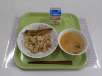 ・きんぴらごはん・ししゃものカレー揚げ・呉汁『呉汁』は、水に浸しておいた大豆をミキサーなどですり潰したもの(呉といいます)をみそ汁にいれたものです。栄養たっぷりの呉汁です。