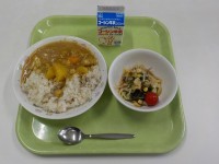 ・牛乳・ほうとう風かけうどん・じゃがいものチーズ焼き・りんご今日は、かぼちゃの入った「ほうとう風かけうどん」が出ました。かぼちゃのほかにも白菜や大根、にんじん、長ねぎ、油揚げ、鶏肉などの入り、具だくさ...
