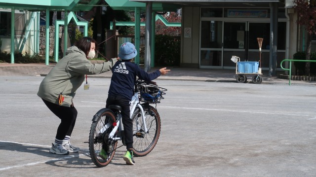 そのあとには、実際に自転車に乗って練習もしました!