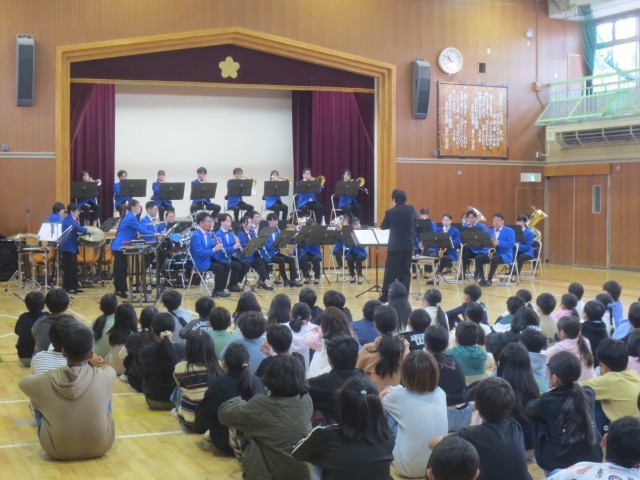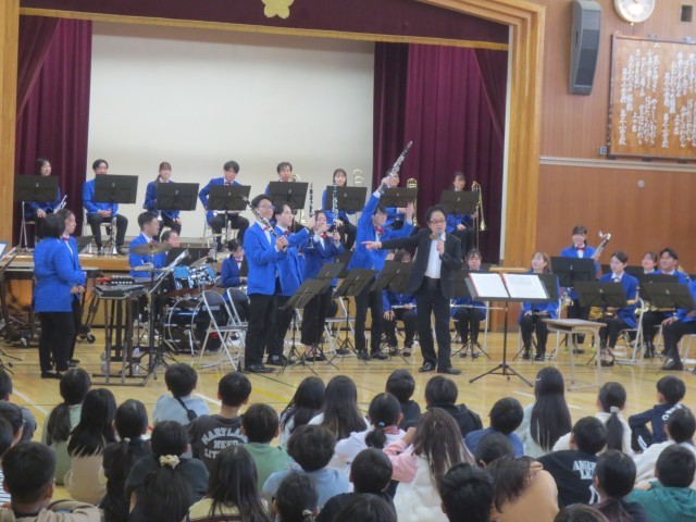 今日は板橋区吹奏楽団をお呼びして、板二小の子供たちのためにコンサートを開きました。