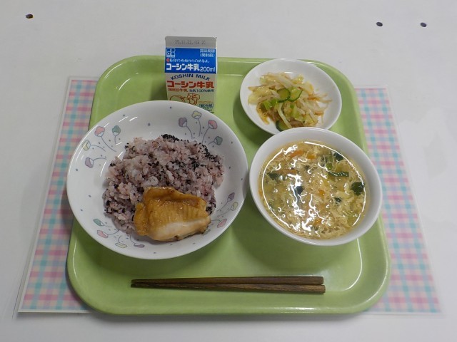 今日は、七五三の行事食として新メニューの『古代米赤飯』をつくりました。