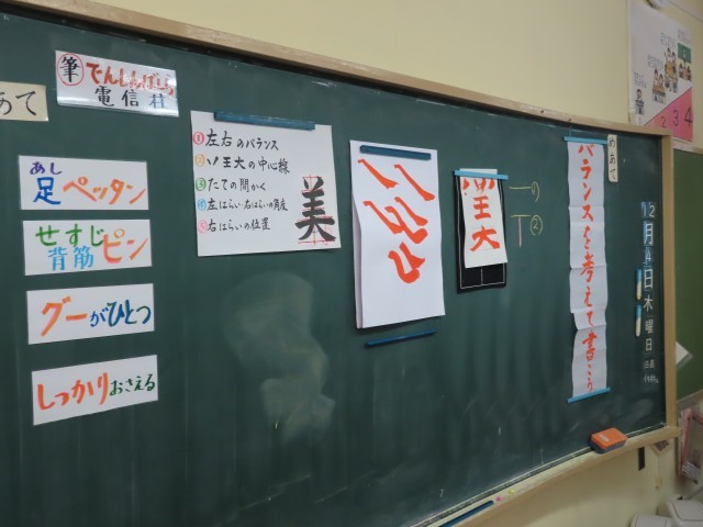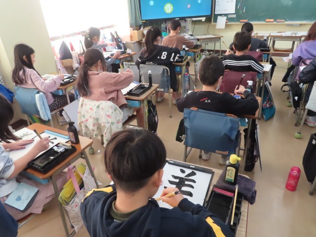12月4日(木)には、3,4年生の書き初めの練習がありました。