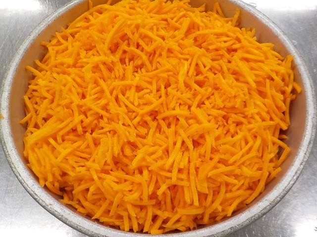 千切りにしたにんじん、油揚げ、鶏ひき肉を生姜汁やしょう油、酒、砂糖などの調味料で煮た